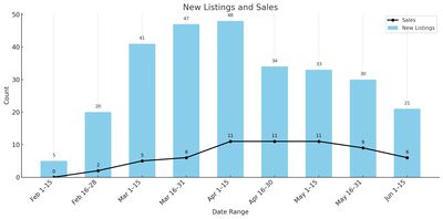 New listings slowed in May, with just 67 new properties in our zone. June has been slow so far, with a total of 21 listings.